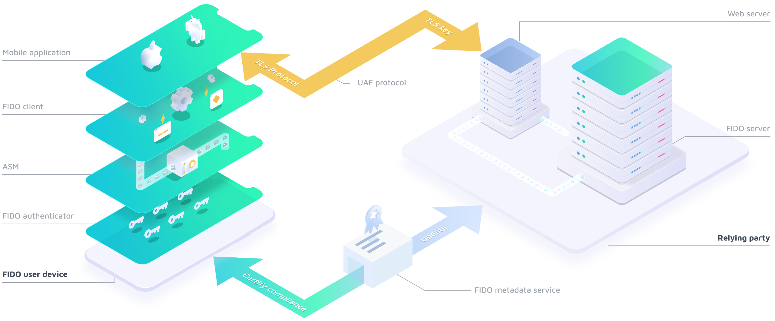 This documentation will help you better understand what the FIDO UAF components are. Through some architectural schemes you can get an overview of our solution.