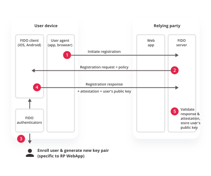 Interacting with a user agent on the device (e.g. a mobile app, browser) using user agent-specific interfaces to communicate with the FIDO UAF Server. For example, a FIDO-specific browser plugin would use existing browser plugin interfaces or a mobile app may use a FIDO-specific SDK. The user agent is then responsible for communicating FIDO UAF messages to a FIDO UAF Server at a Relying Party.